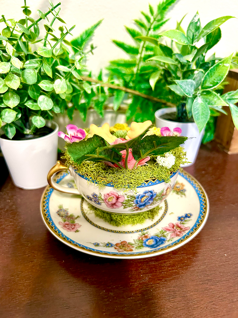 DISCLAIMER: The tea set is fragile as it is a real upcycled tea cup and saucer.