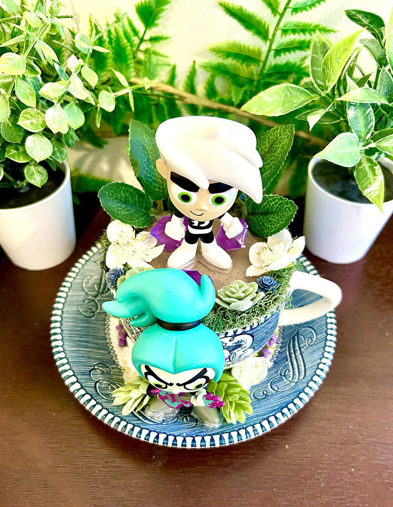 Danny & Ember from Danny Phantom Tea Cup Terrarium