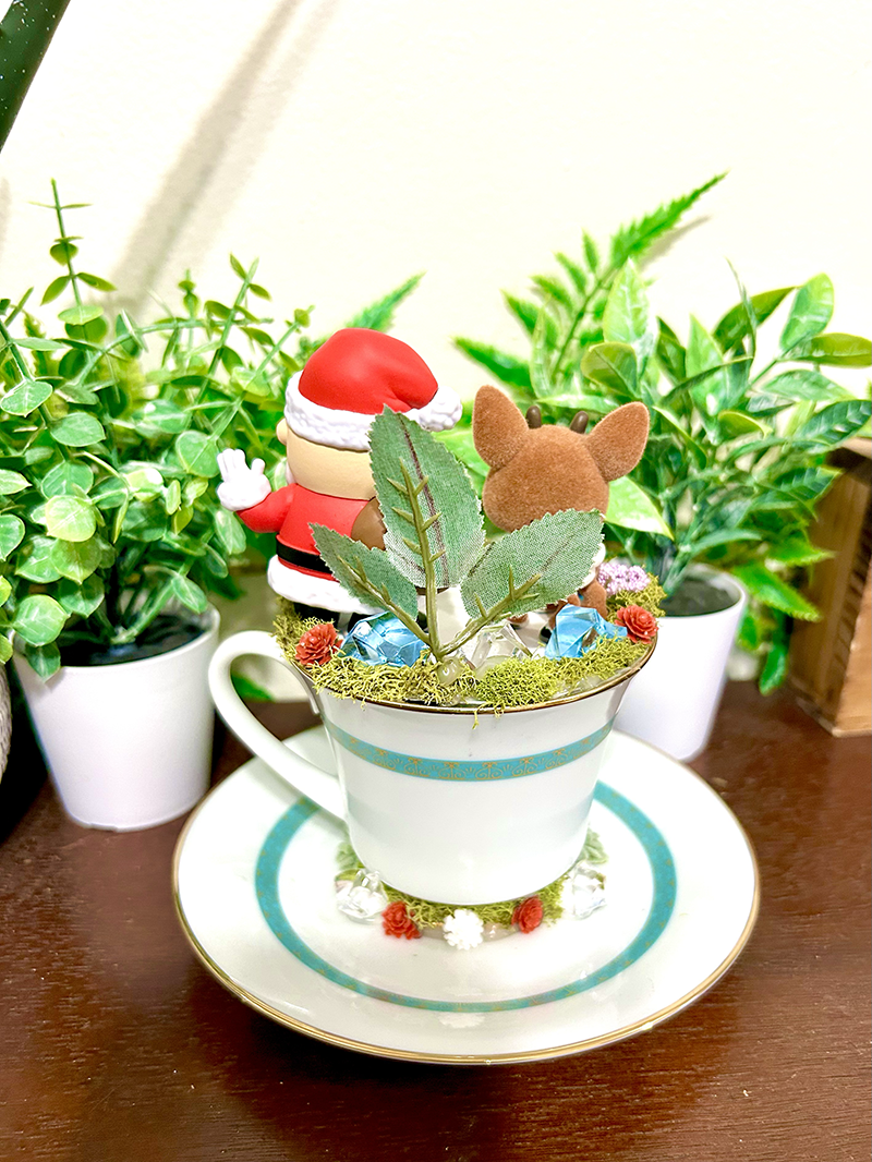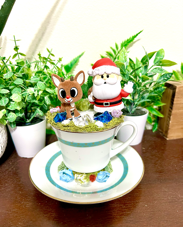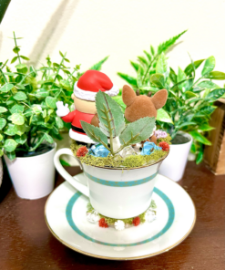 Rudolph & Santa Tea Cup Terrarium