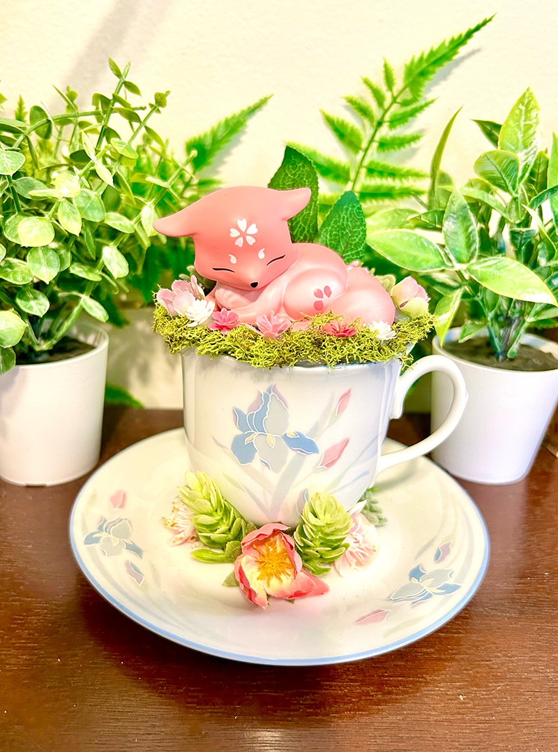 Sakura Fox Tea Cup Terrarium